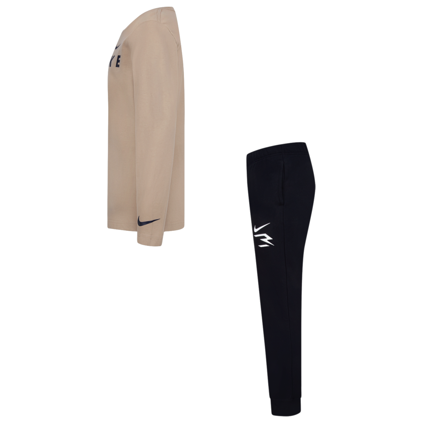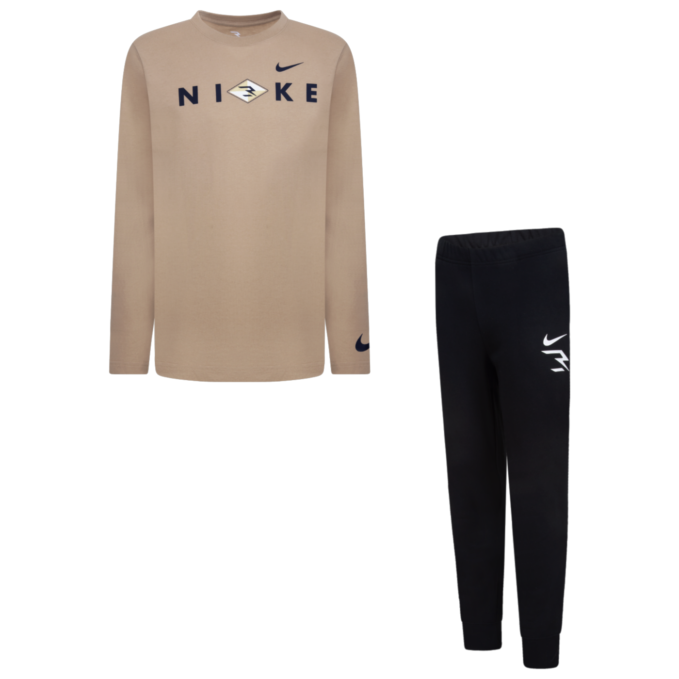 Dress your young MVP in style and comfort with the Nike 3BRAND by Russell Wilson Big Kids' Logo Long Sleeve Tee and Pants Set. The jersey fabric tee, with its cozy ribbed collar and long sleeves, matches perfectly with the soft fleece pants. Both adorned with the prestigious Nike 3BRAND logo, this set features an elastic waistband, handy pockets, and elastic cuffs for a snug, comfortable fit that's ready for any adventure.
